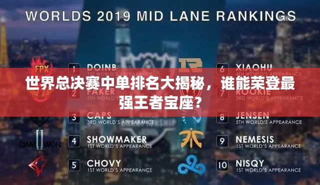 世界总决赛中单排名是评价选手实力的重要指标之一,顶尖中单选手凭借出色的操作技巧、战术意识和团队协作能力,在比赛中展现出惊人的实力,排名的背后是无数次的训练和努力,以及适应不断变化的游戏版本和战术策略,我们期待更多优秀的中单选手为世界带来精彩的比赛。